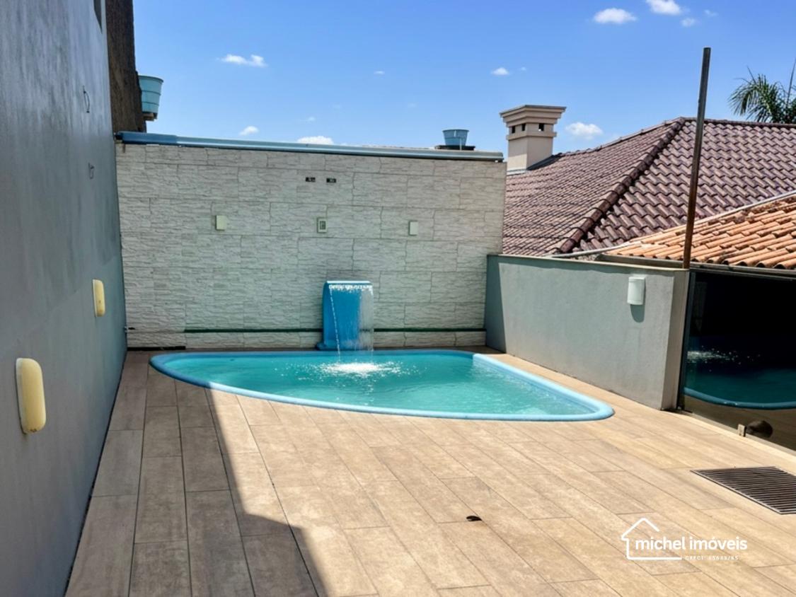 Área externa com piscina e espaço para lazer